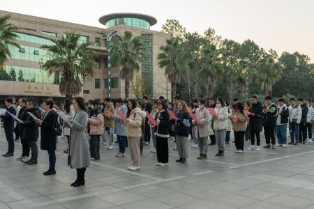 12月3日清晨,统计学院在蛟桥园校区崛起广场参加纪念国家宪法日升国旗仪式。