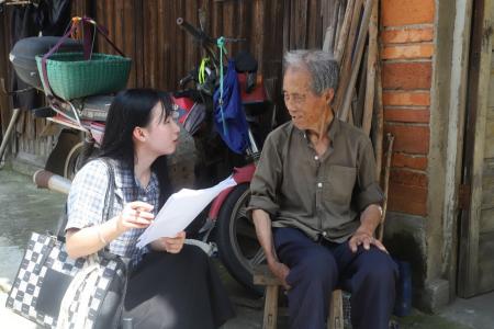 图为新葡京 统计学院学子询问当地居民生活情况。