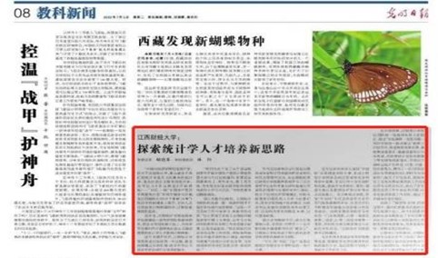 统计学科在2022软科中国最好学科排名中位列统计学科全国排名第9位。2022年7月,《光明日报》以“探索统计学人才培养新思路”为题,对我校统计学院的人才培养新思路进行了专题报道。《在脱贫攻坚战场上闪耀的江财智慧》等被《中国教育报》、人民网、中国青年网、《江西日报》等主流媒体刊发报道,学院对外形象度美誉度不断提升,社会声誉不断提高。持续举办中国统计学年会、中国统计教育学会青年统计学者分会理事会议、全国统计教材编审委员会办公会议等一系列重要会议。