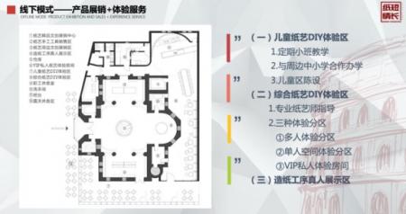 方泽楷学长高兴地和记者说到:“本项目的儿童体验区旨在促进亲子互动,启蒙教育。和周边中小学联合办学,综合体验区聚焦个性化需求,设置单人、多人、VIP私人体验区,顾客可以自由选择纸艺模型制作,纸艺专家面对面指导,让每一位顾客近距离感受到纸艺文化的魅力。”