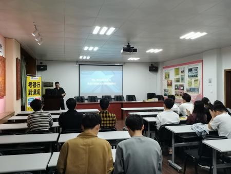4月23日晚,统计学院在北综313会议室举办银行报考宣讲会,邀请课观教育樊磊主讲,旨在进一步加强在校学生对银行就业形势的认识,帮助同学们了解当前银行报考的大环境,参会的主要是统计学院2022届毕业生。