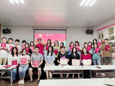聘书颁发环节,庄园依次为全体研分会成员颁发聘书,并与全体研分会成员进行合影留念。庄园老师肯定了研分会全体成员在这一年以来的努力,并对研分会全体成员一年以来的付出表示感谢。
