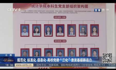 4月5日,中国教育电视台于全国教育新闻联播频道播放新闻视频,介绍统计学院党建“三化”建设成果,视频中提到,新葡京 以基层党建标准化、规范化、信息化为抓手,推动基层党组织全面进步、全面过硬。