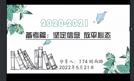 5月21日下午,统计学院于线上举办第二期优秀毕业生分享会活动。本次分享会邀请到了2021届优秀毕业生胡雨璐为同学们分享她四年来在学习与工作中的经验心得。