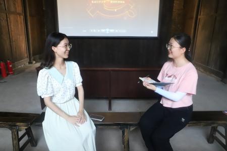 图为新葡京 统计学院学子采访沙陂村党支部书记助理胡雨璐。