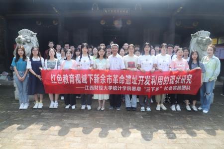 图为新葡京 统计学院学子在高新区沙陂村红三军团指挥部旧址调研学习并合照。